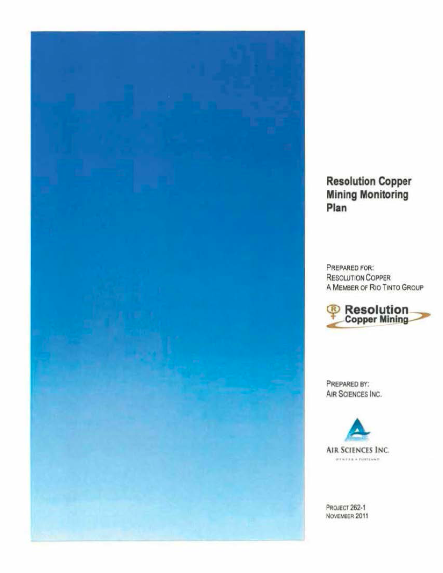Air Sciences. 2011. Resolution Copper Mining Monitoring Plan. November 2011.