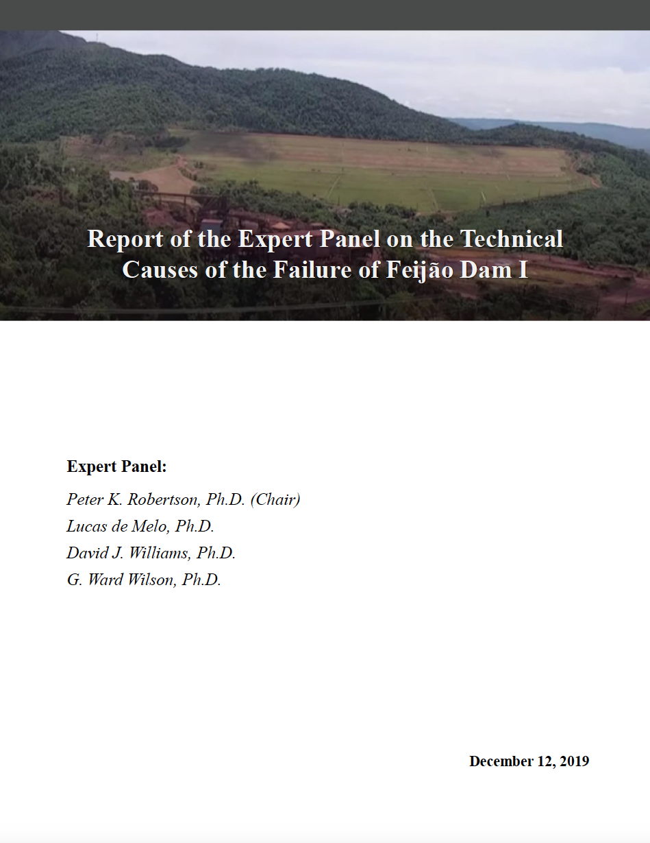 Robertson, P.K., L.d. Melo, D.J. Williams, and G.W. Wilson. 2019. Report of the Expert Panel on the Technical Causes of the Failure of Feijão Dam I.