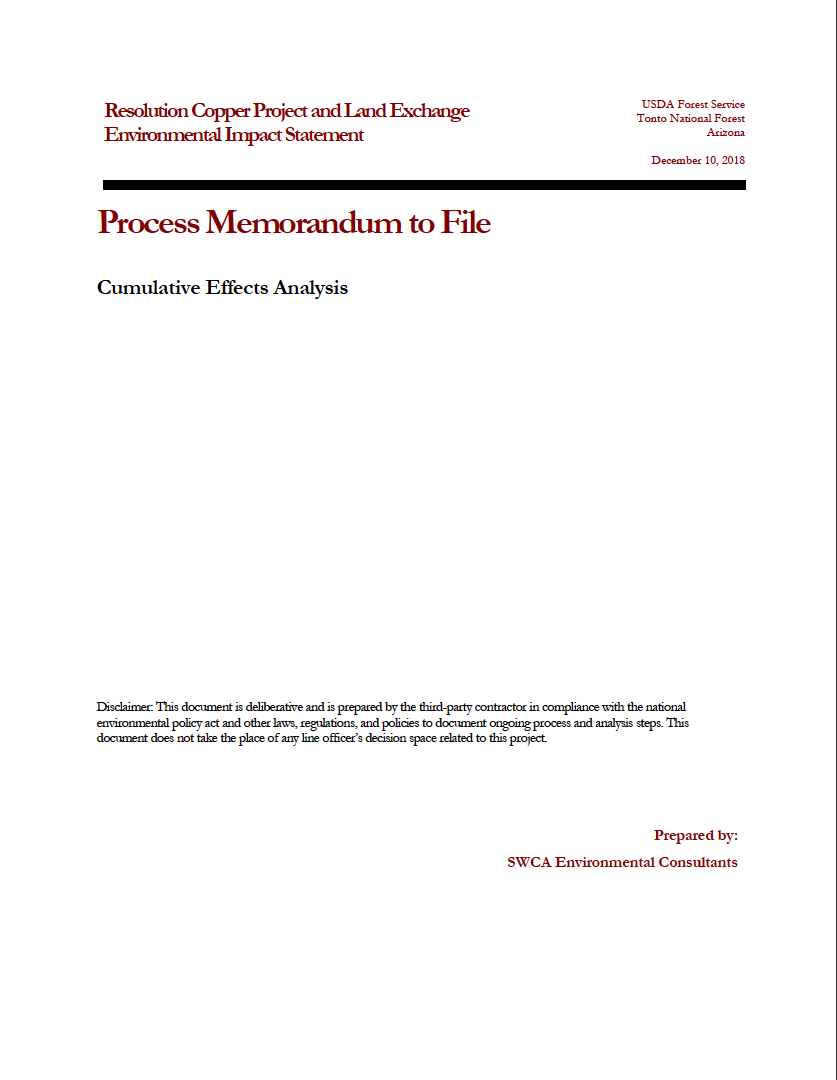 SWCA Environmental Consultants. 2018b. Overview of Potential Mining Impacts on Public Health and Safety and Rationale for Analysis Approach. Process memorandum to file. Phoenix, Arizona: SWCA Environmental Consultants. May 31.